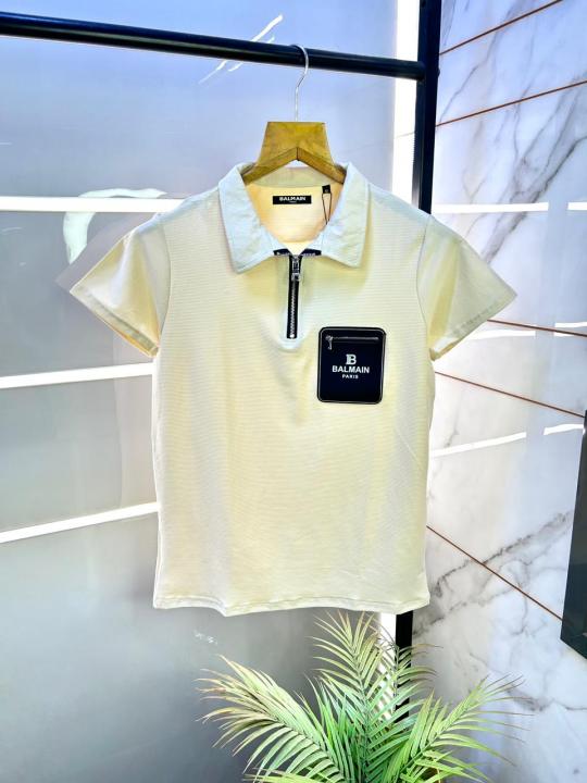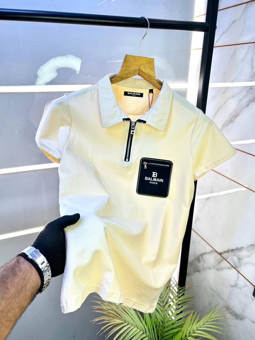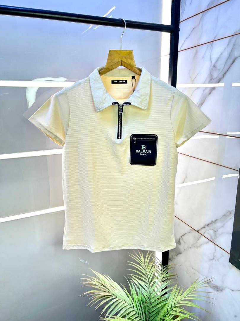 Balmai n Paris Imported Zipper Cream Collar Neck Premium Polo T-shirt F3114-CR