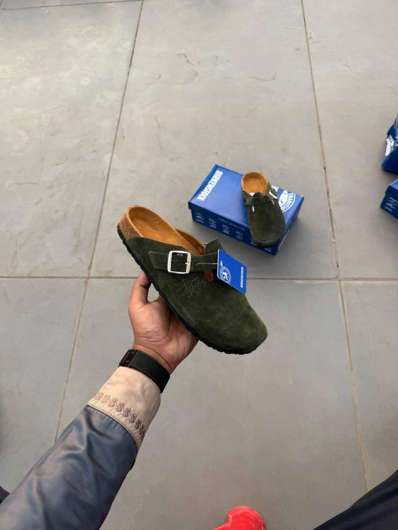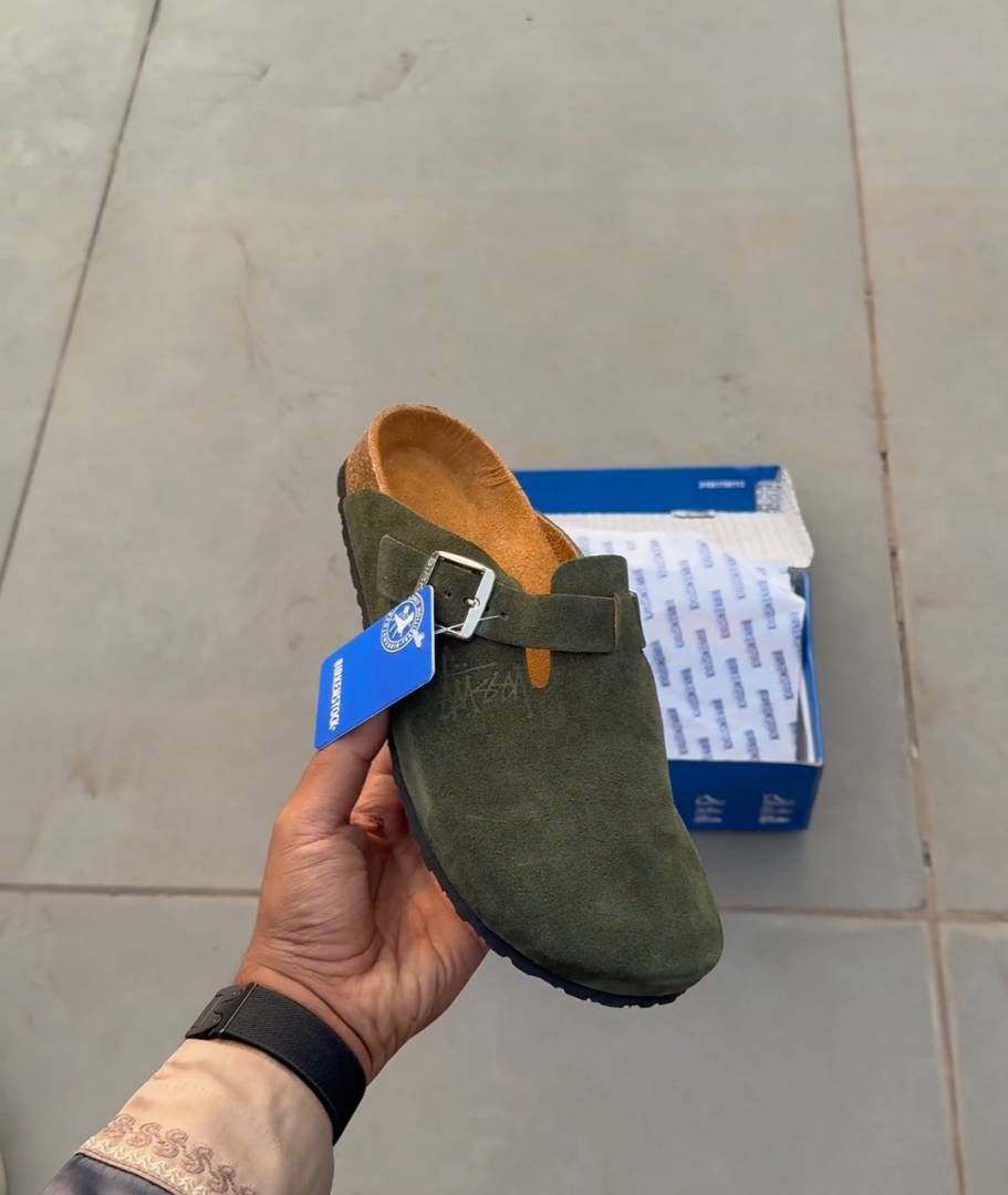 Birkenstoc.k x Stussy Boston Suede Olive Green