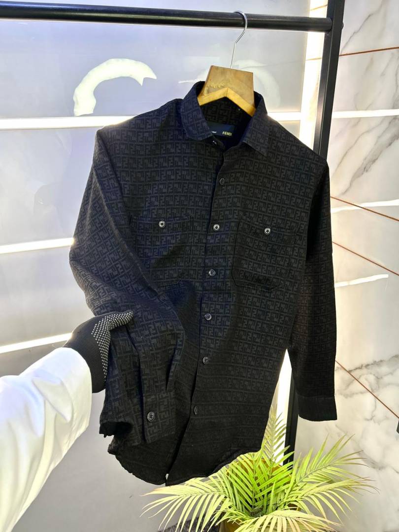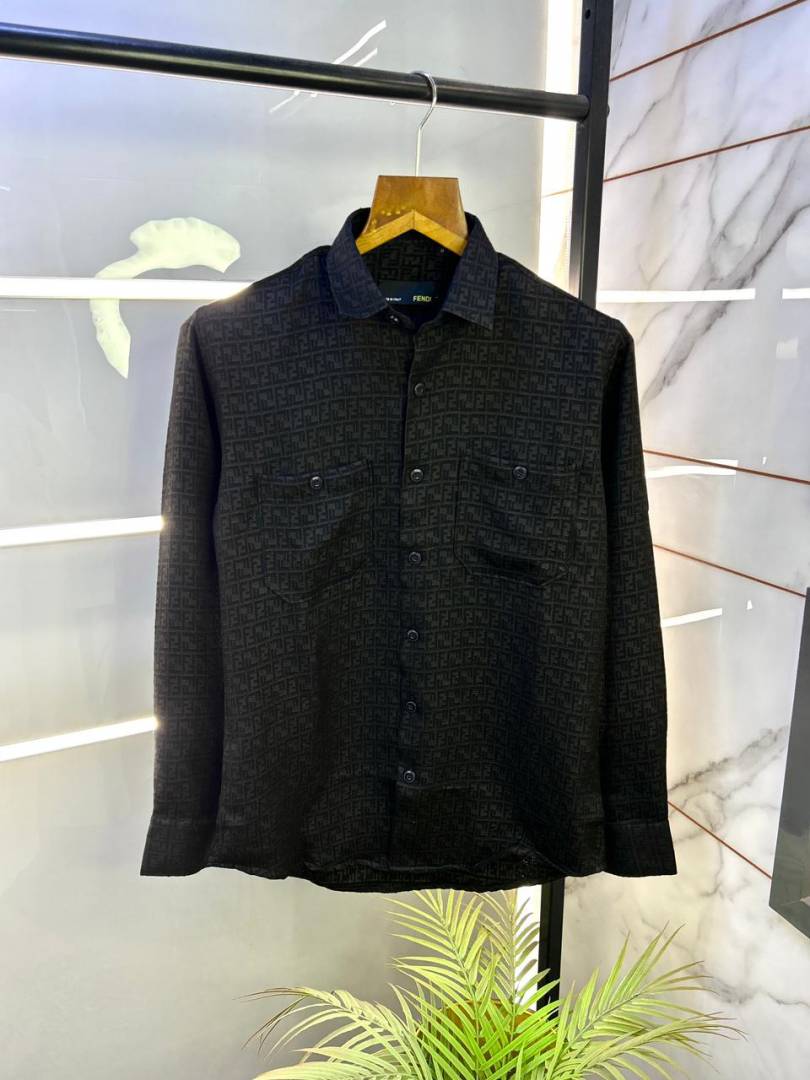 Fend i Monogram Allover Print Premium Black Shirt With Brand Packing F2982-BL